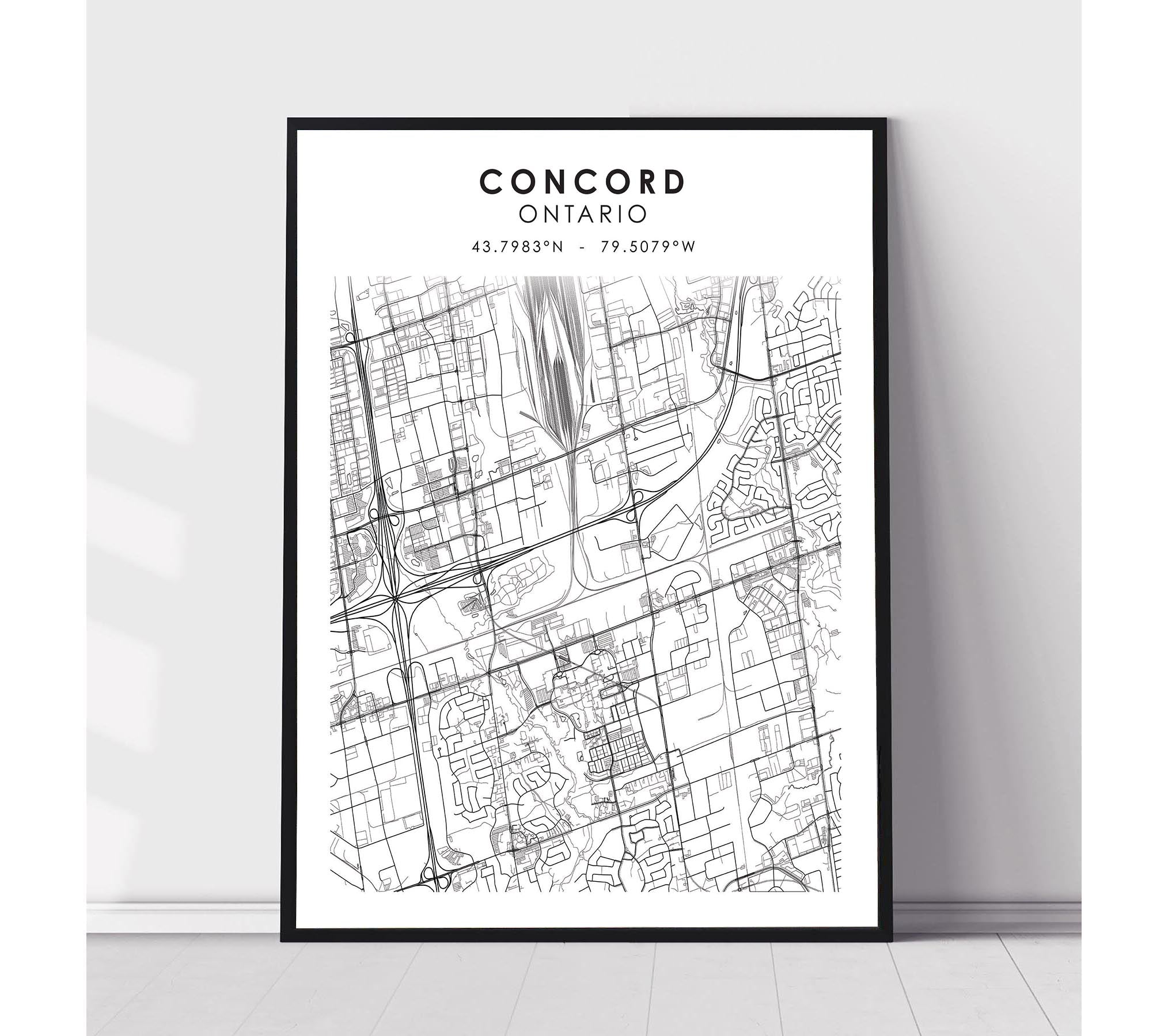 Concord, Ontario Scandinavian City Map Print | City Streets Map