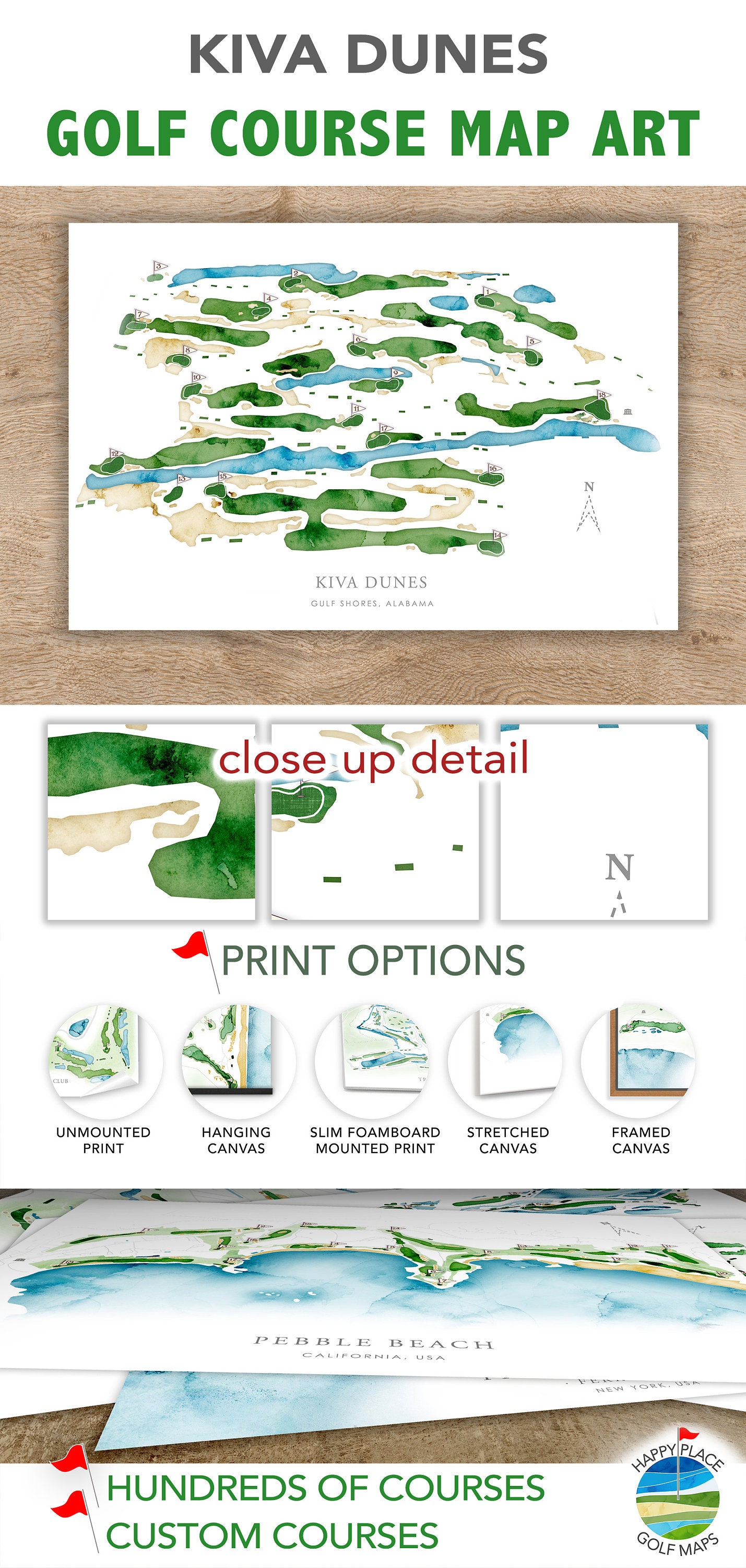 Kiva Dunes Golf Course Map Wall Art, Alabama Golf Map of Course